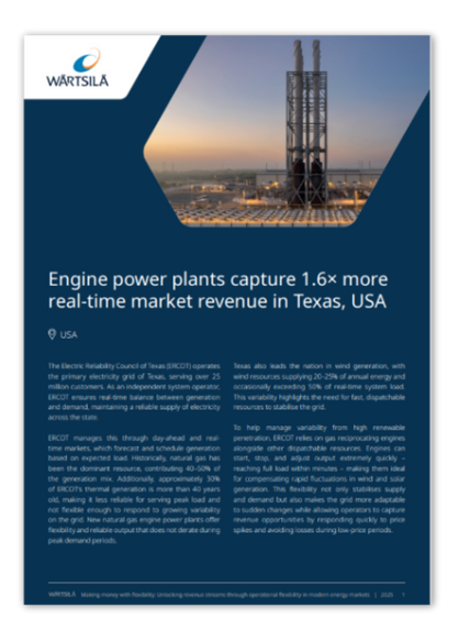Engine power plants capture 1.6× more real‑time market revenue in Texas, USA