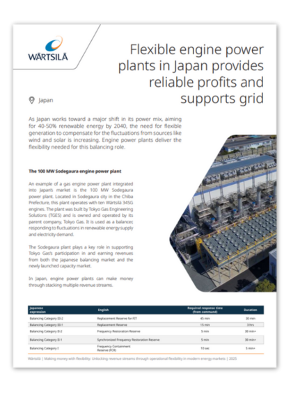 Flexible engine power plants in Japan provide reliable profits and support the grid