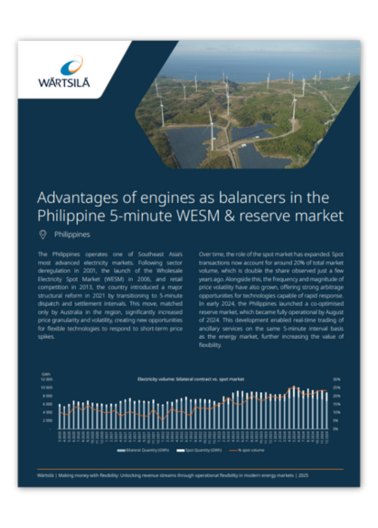 Engine power plants are one of the most flexible power generation technology available today because they can start, stop and ramp up output faster than any other technology. This makes them ideal for capturing value in advanced electricity markets, where speed and flexibility are essential.