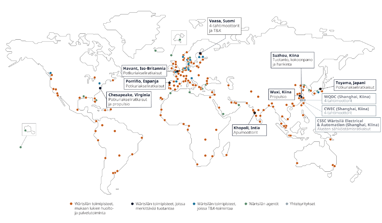 Näe Wärtsilän globaalin toiminnan kartta täältä