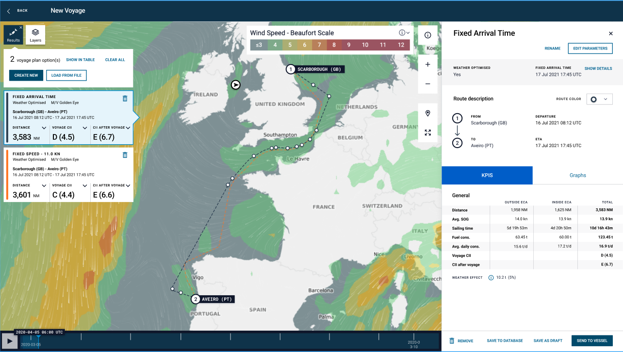 integrates speed and fuel consumption forecast at an early stage, while conducting voyage planning, to give operators visibility and help them to understand impact of the vessel’s speed on the CII rating.