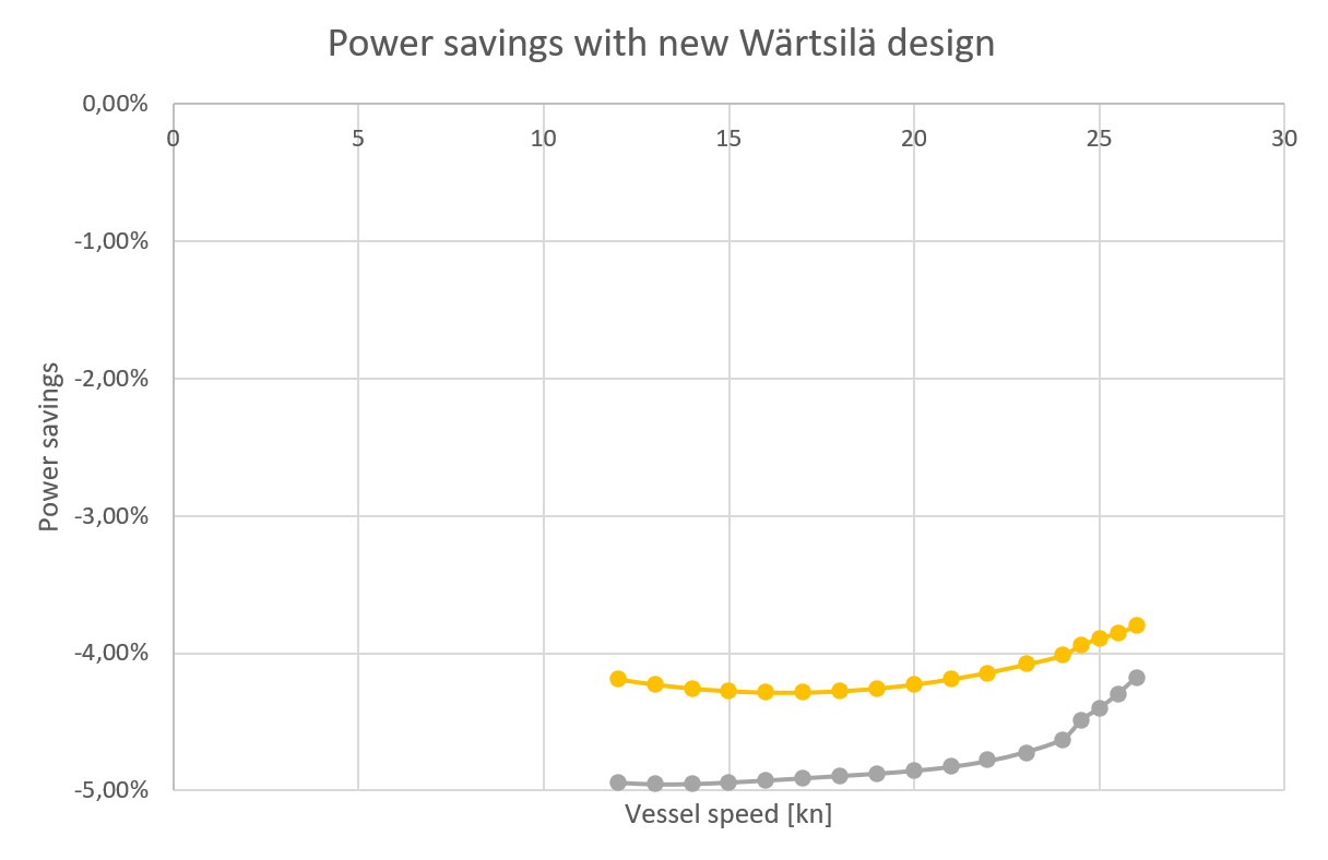 The new design optimises cavitation and efficiency. The grey data points in the graph below show the benefits – a clear increase in performance with the new design, with power savings of around 5%.