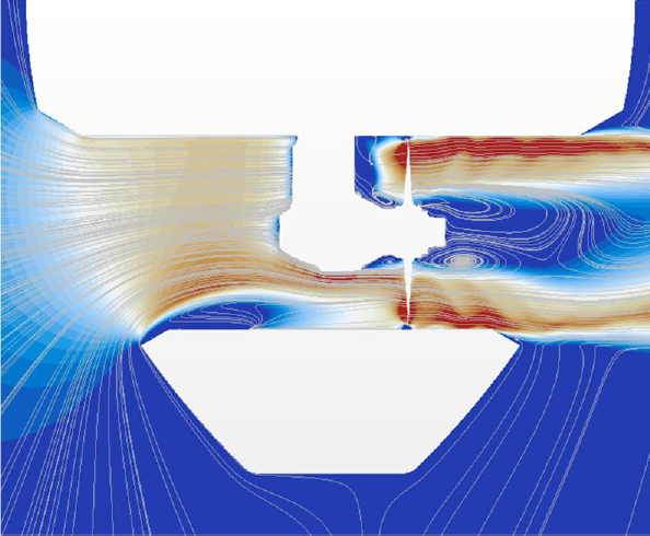The picture below is the situation without EnergoFlow – note the red, turbulent area.