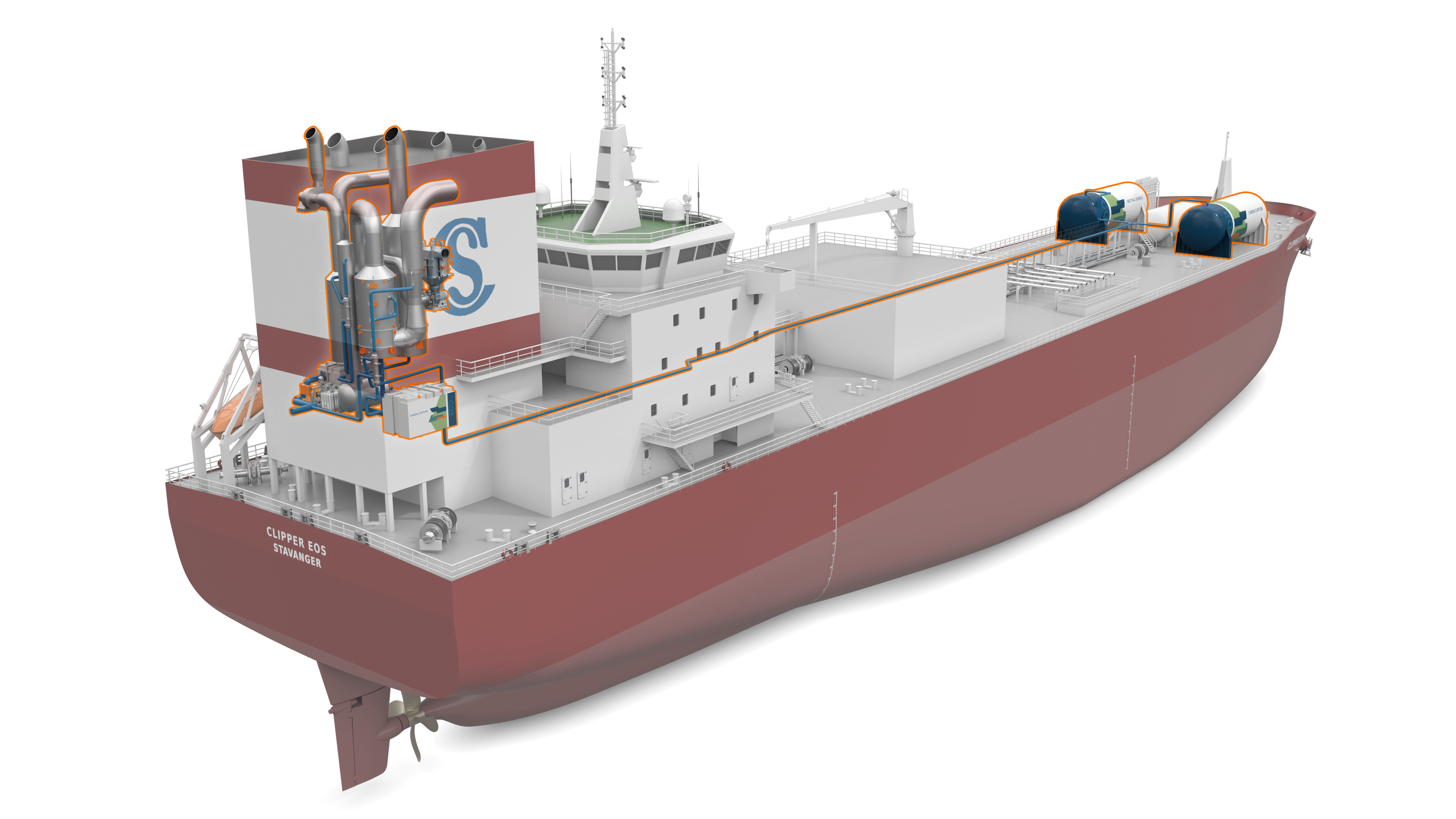 Next in line is carbon capture and storage (CCS). In the very near future, developments in exhaust gas abatement technologies will enable shipping to capture carbon at the point of exhaust. For example, together with Norwegian shipping company Solvang ASA, Wärtsilä Exhaust Treatment is already due to undertake a full-scale pilot retrofit installation of a CCS system on one of Solvang’s ethylene carriers, the 21,000 cbm Clipper Eos. The project is supported by the vessel’s charterer Marubeni Corporation, and the installation is expected to be completed in 2023.