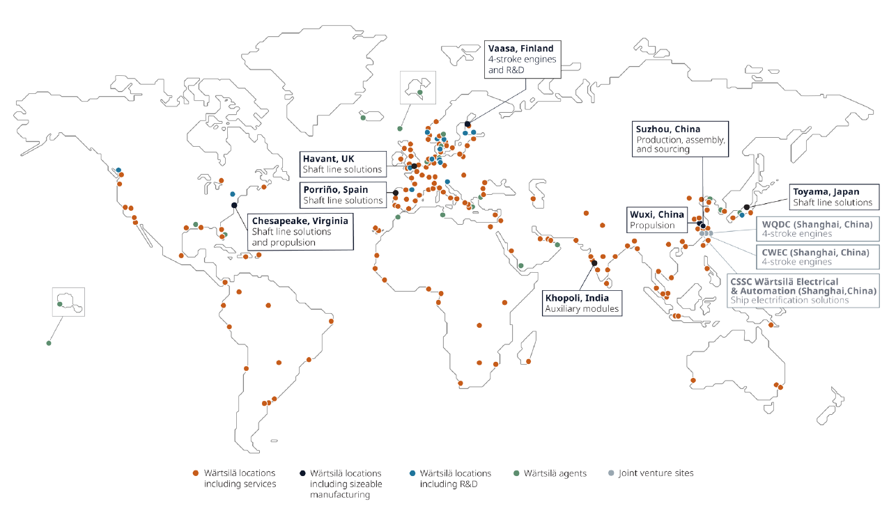 Wärtsilä is a global leader in innovative technologies and lifecycle solutions for the marine and energy markets. To support our geographically dispersed customer base, Wärtsilä’s sales and service network covers more than 230 locations in 77 countries worldwide. With 190 years of experience, emphasising the importance of developing long-term relationships, we partner with subsidiaries, joint ventures, and a global network of suppliers.