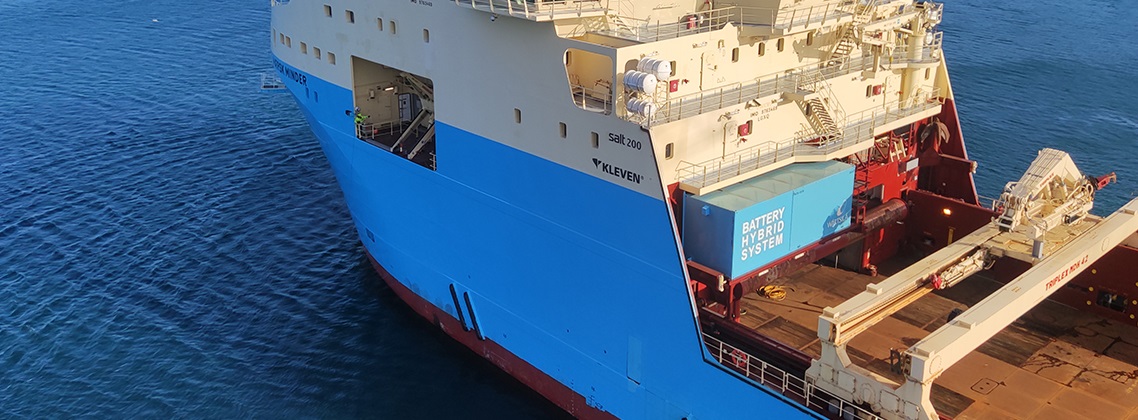 Wärtsilä HY hybrid upgrade cuts fuel consumption and carbon emissions onboard the Maersk Minder anchor handling tug supply vessel.